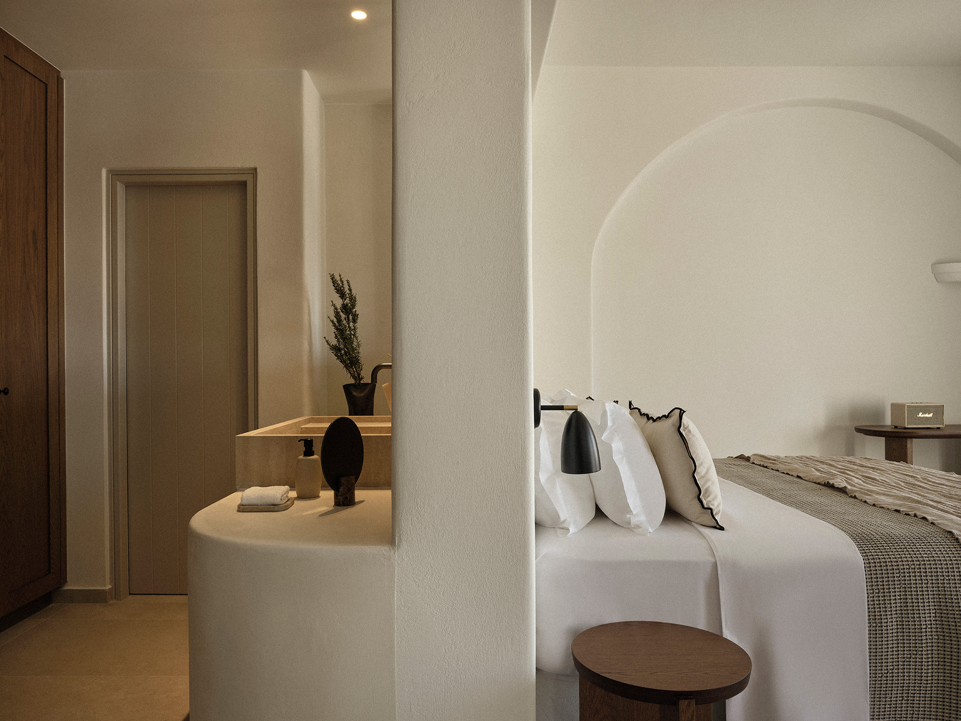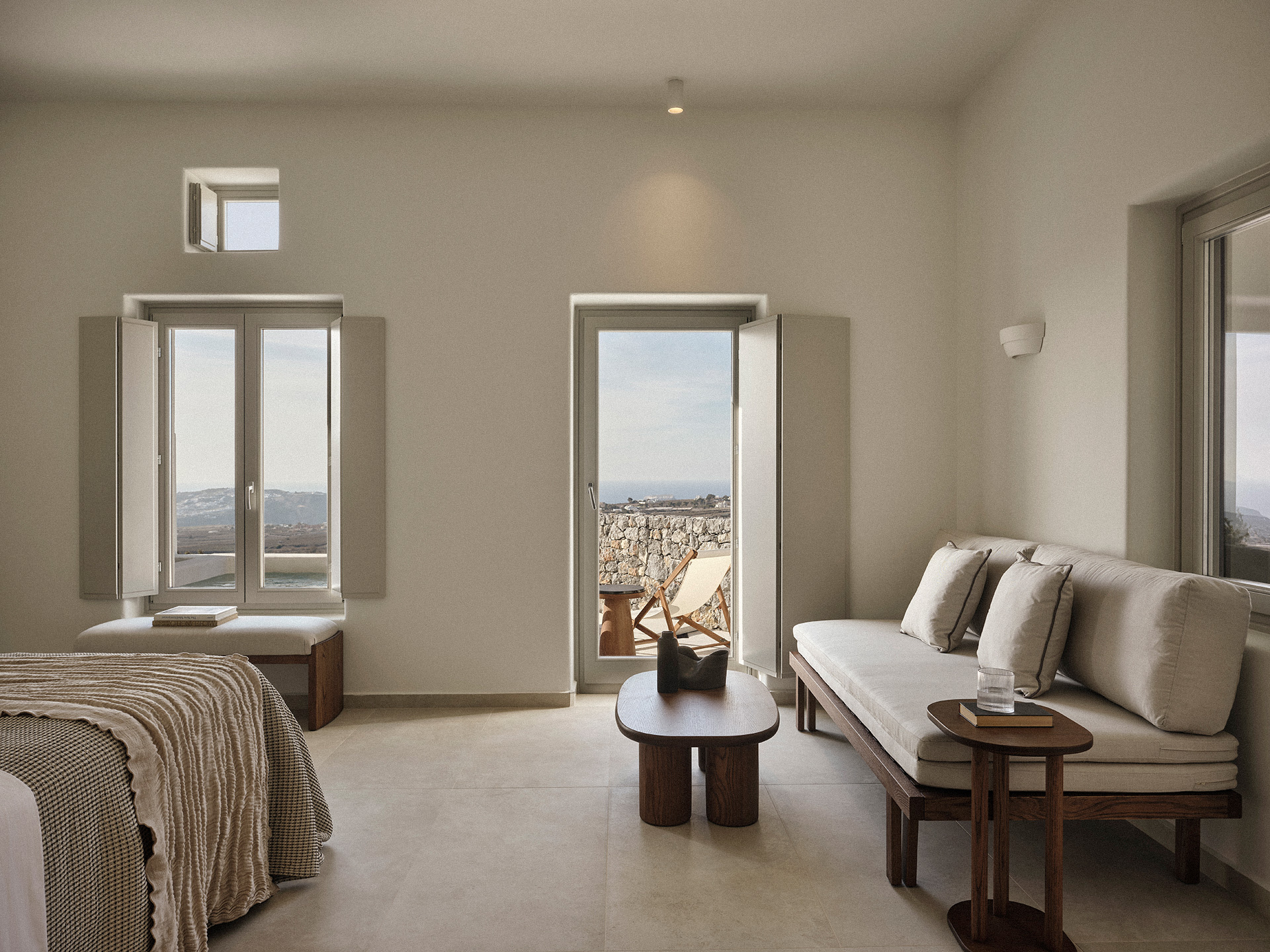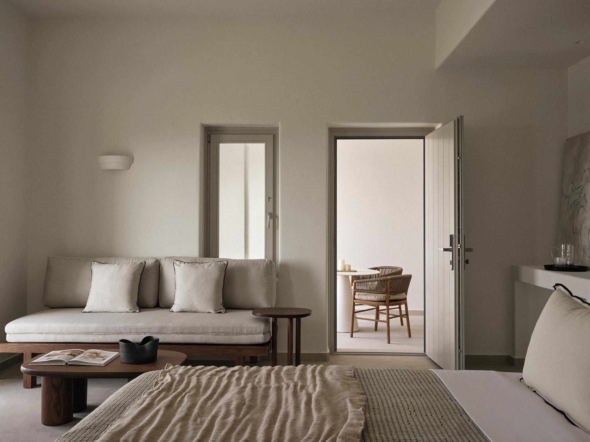 Ιδανική για μια γαλήνια απόδραση, αυτή η Junior Σουίτα συνδυάζει κομψότητα και άνεση. Οι ευρύχωροι εσωτερικοί χώροι της ανοίγουν σε μια μεγάλη ιδιωτική βεράντα με εξωτερικό θερμαινόμενο υδρομασάζ—ιδανικό για ζευγάρια—και απρόσκοπτη θέα στο Αιγαίο.