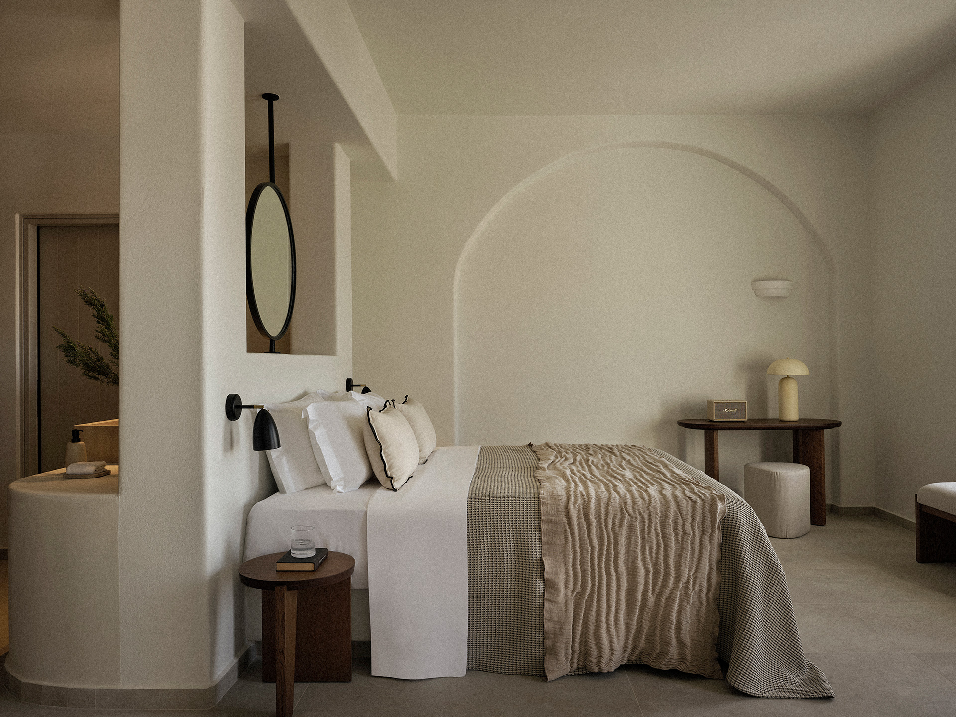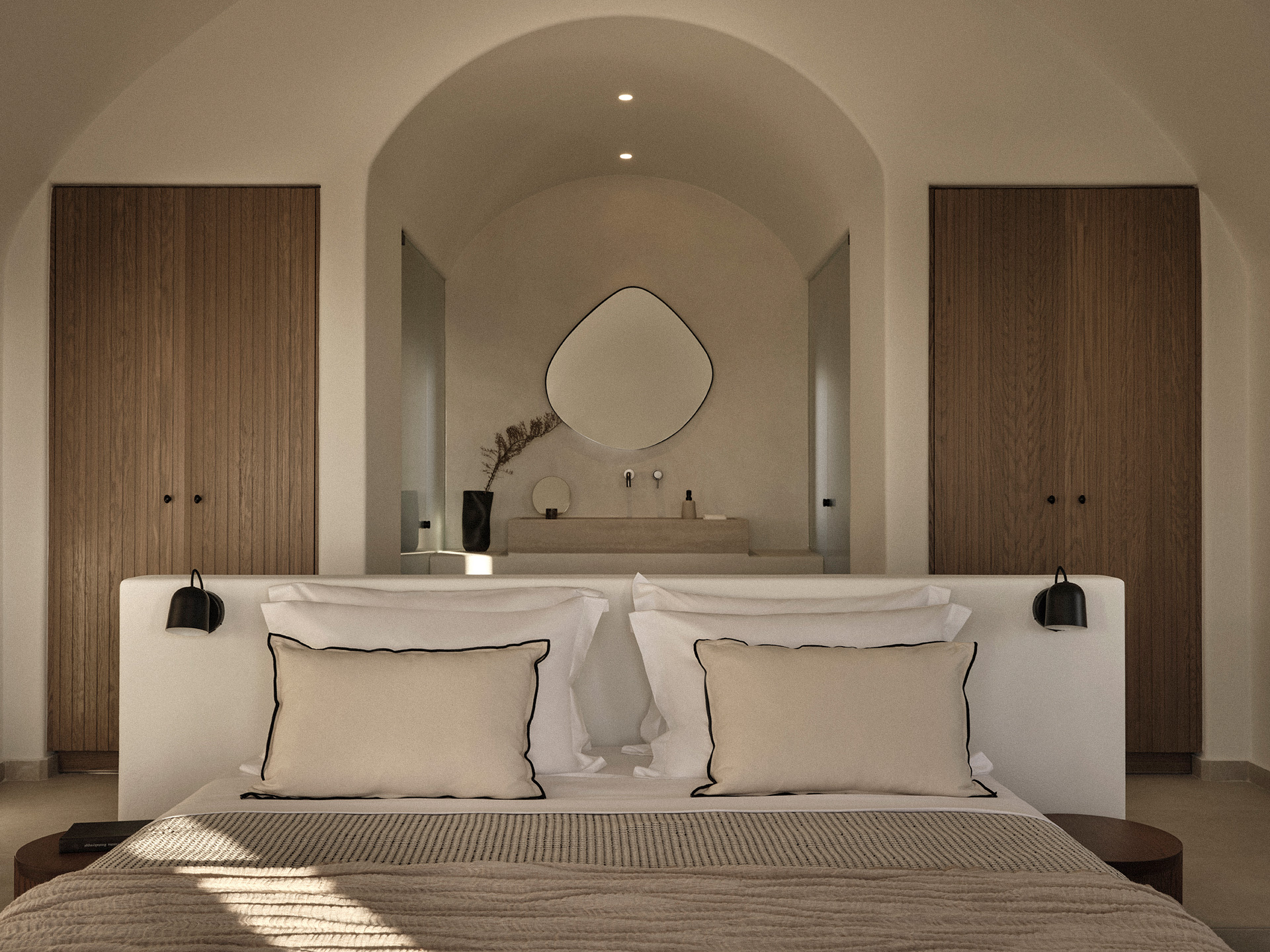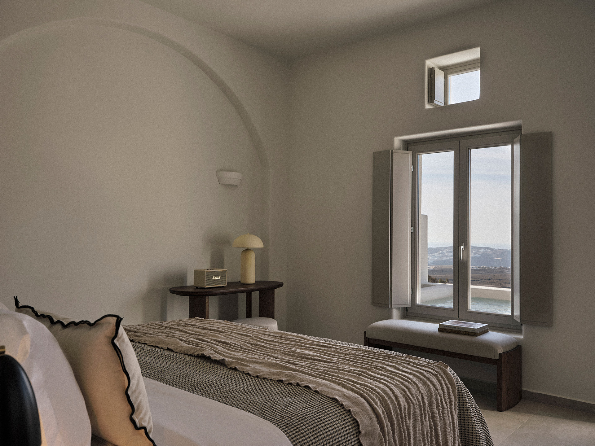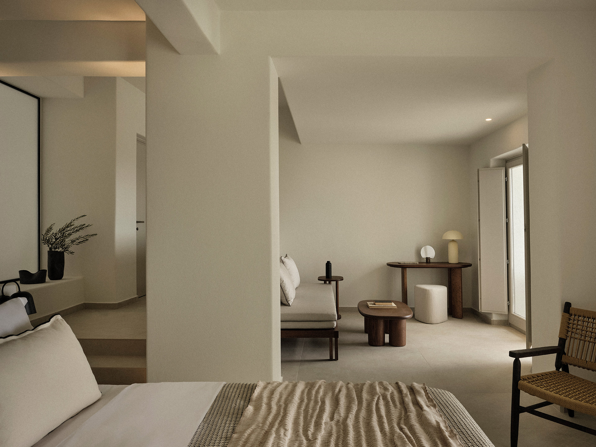 Ιδανική για μια γαλήνια απόδραση, αυτή η Junior Σουίτα συνδυάζει κομψότητα και άνεση. Οι ευρύχωροι εσωτερικοί χώροι της ανοίγουν σε μια μεγάλη ιδιωτική βεράντα με εξωτερικό θερμαινόμενο υδρομασάζ—ιδανικό για ζευγάρια—και απρόσκοπτη θέα στο Αιγαίο.